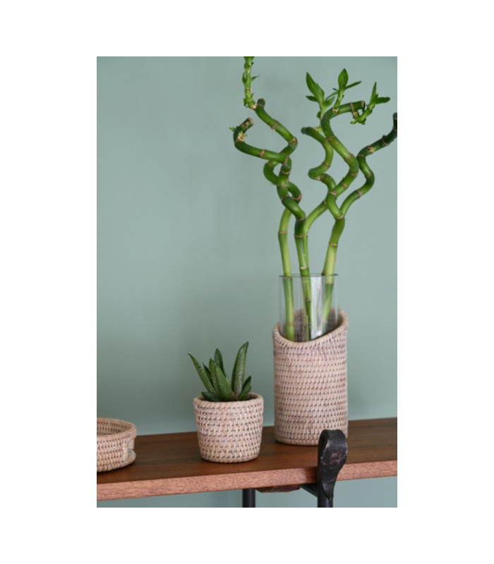 Vase Pye rotin blanc cérusé, modèle M