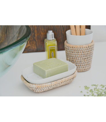 Porte savon rotin et porcelaine Alzéa