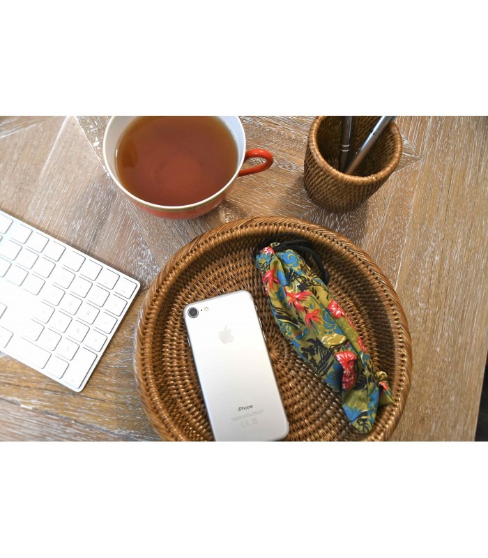Petit plateau rond, rotin coloris miel